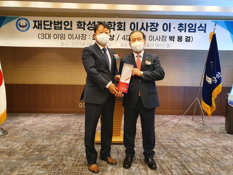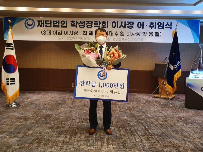 박 이사장은 이날 취임식을 맞아 학성고 발전을 위해 장학재단에 1000만원을 기탁했다. 또 학성장학회의 발전에 기여한 3대 최해상 이사장과 엄원섭 사무국장에게 공로패가 수여됐다.