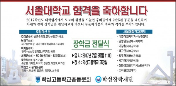 안내: 2017학년도 대입입시에서 모교의 위상을 드높인 후배들에게