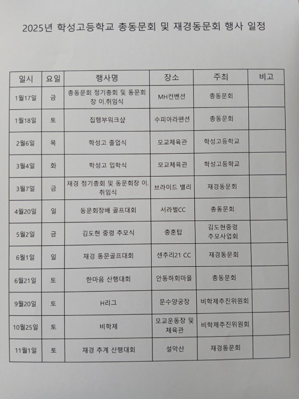 2025년 학성고총동문회 연간 계획 안내