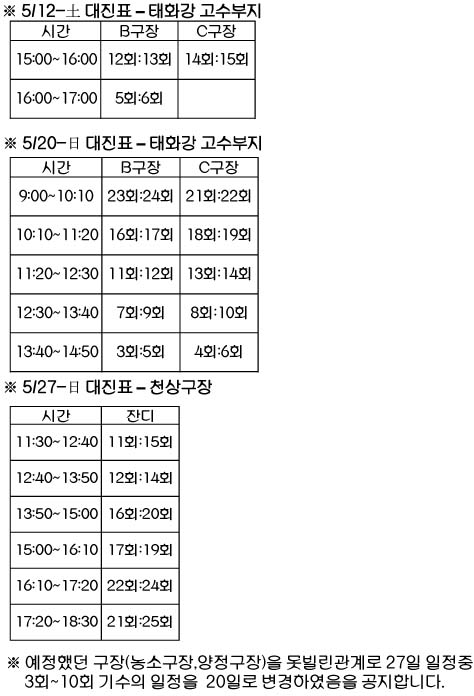 H-리그 예선전 변경 일정(5/12, 5/20, 5/27)