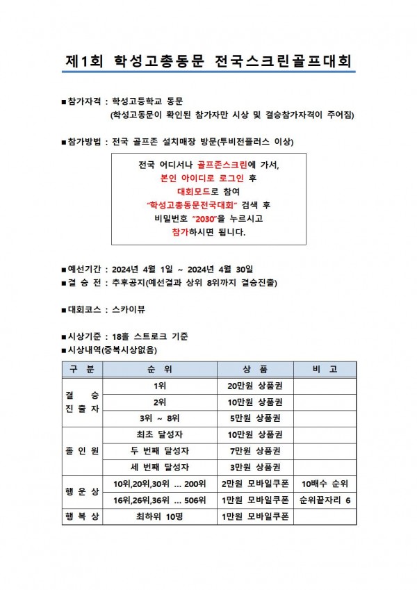 2024 학성고총동문 전국 스크린 골프대회