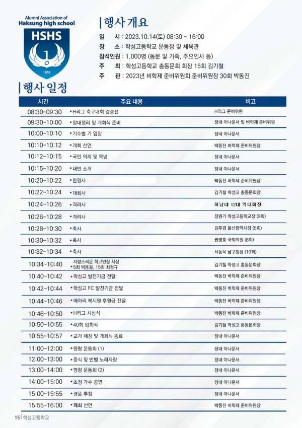 * 장소 : 학성고등학교 운동장 및 체육관