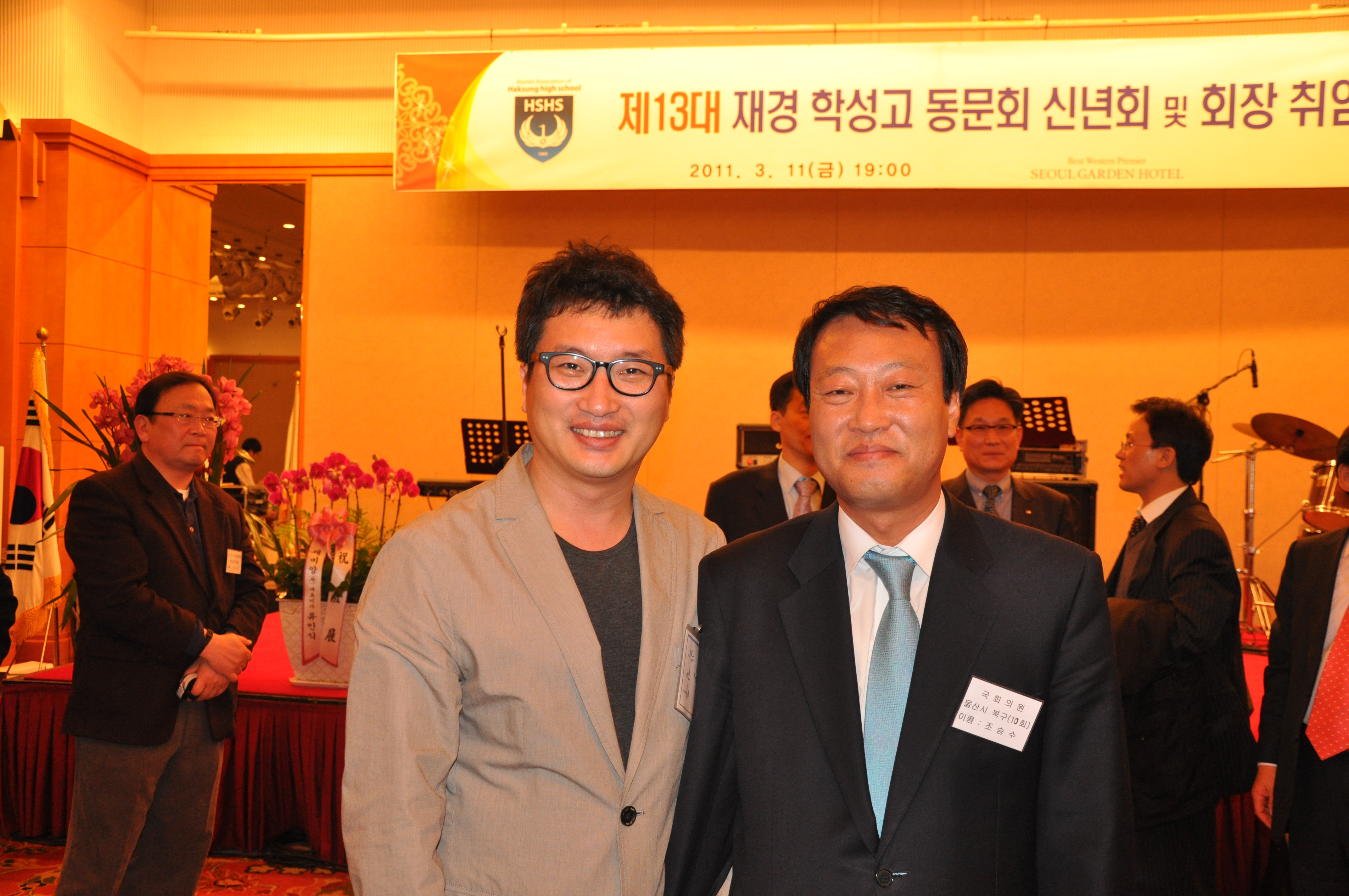 울산지역 국회의원님들과 300여 재경동문들이 참석한가운데 선,후배님들이 모인 즐거운 자리였습니다. 울산에서 총동문회장님외 집행부와 장학회, 편집위원회에서 참석하였습니다