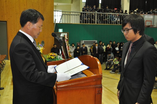 오늘 학성고 졸업식왔습니다..... 4회 동문으로 입학하여 수학을 하다 개인사정으로 인해 중단하였다가 지천명이 훨씬 지난 나이에 다시 수학하여 무려 36년만에 졸업을 함으로써 우리 모두에게 귀감이 되신 선배님이 계십니다. 3학년3반에 졸업하시는 신 동 욱님 입니다.